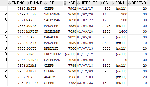 SELECT EMPNO, ENAME, DEPTNO, DNAME