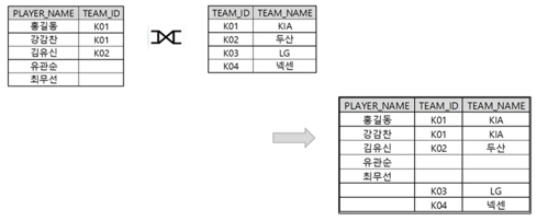 오른쪽 테이블의 데이터를 모두 읽은 후 왼쪽 테이블에서 JOIN 데이터를 가져온다.