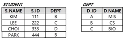 FROM STUDENT S LEFT OUTER JOIN DEPT D