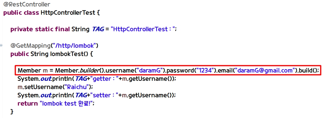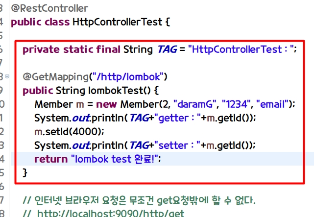 HttpControllerTest.java 파일에 다음과 같은 코드를 추가한 다음,