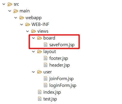그러면 이제 board폴더 안에 있는 saveForm.jsp를 작성해줘야한다.