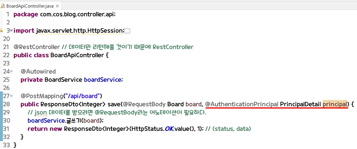 이렇게 PrincipalDetail 클래스에다가 어노테이션 작성하라는 것임!