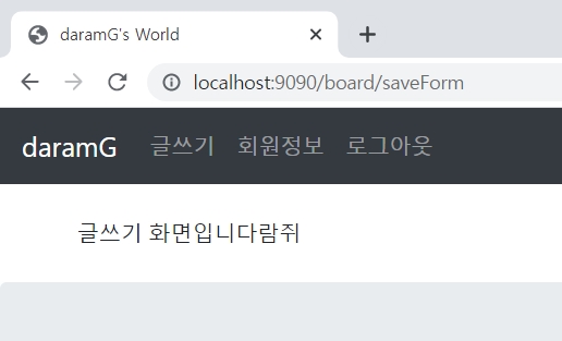 다시 돌아가서, 이제 "글쓰기 화면입니다람쥐" 가 아니라 글쓰기 폼을 작성해보자