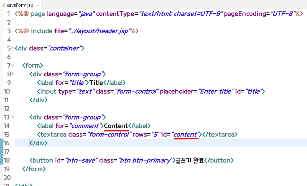 그리고 이제 saveForm.jsp에 해당 코드를 작성하면 된다.