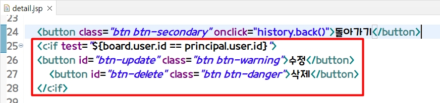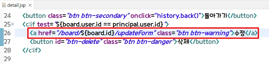 detail.jsp에서 수정버튼을 다음과 같이 다시 작성한다.