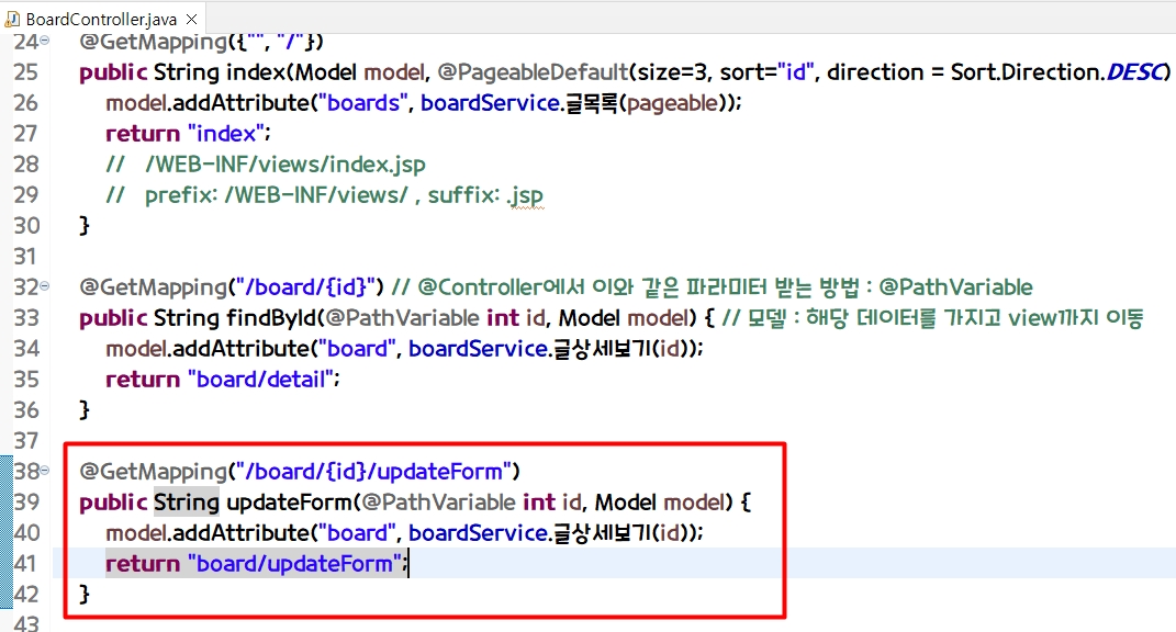 BoardController로 가서 해당 링크에 대한 리턴을 작성한다.