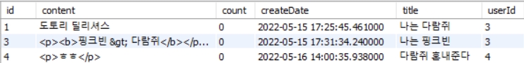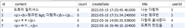데이터베이스를 확인해도 정상적으로 삭제된 것을 볼 수 있다.