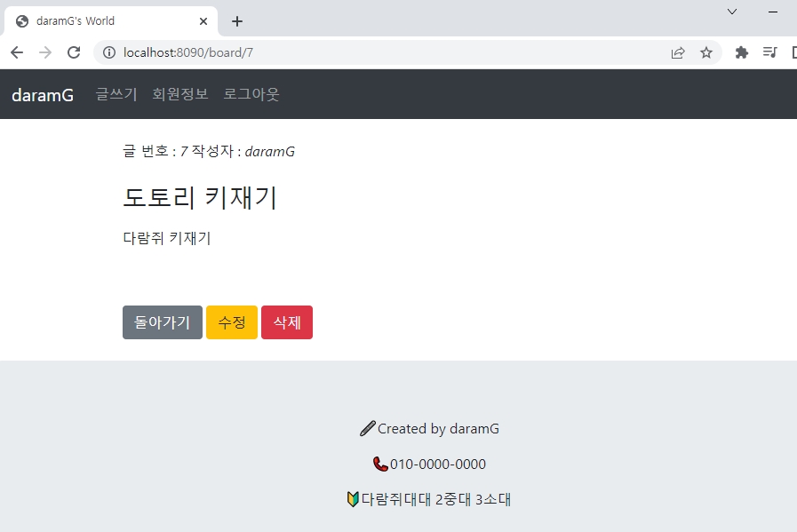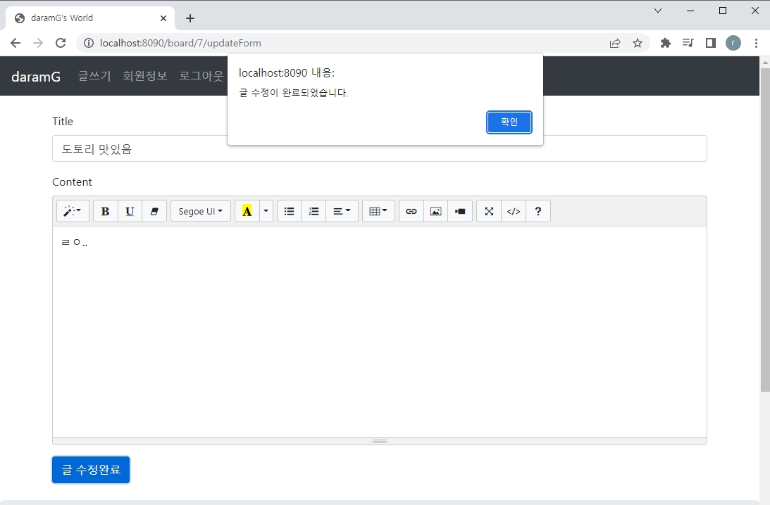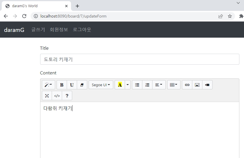 title과 content가 기존 그대로 유지된 상태에서 수정할 수 있다.