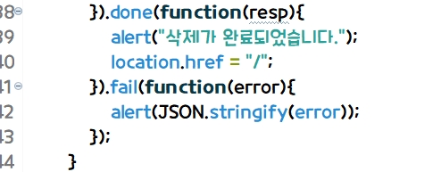 글삭제하기가 완료되면 board.js에서 done이 실행되어