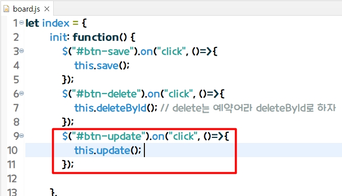 글 수정완료 버튼 id를 btn-update로 설정한다.