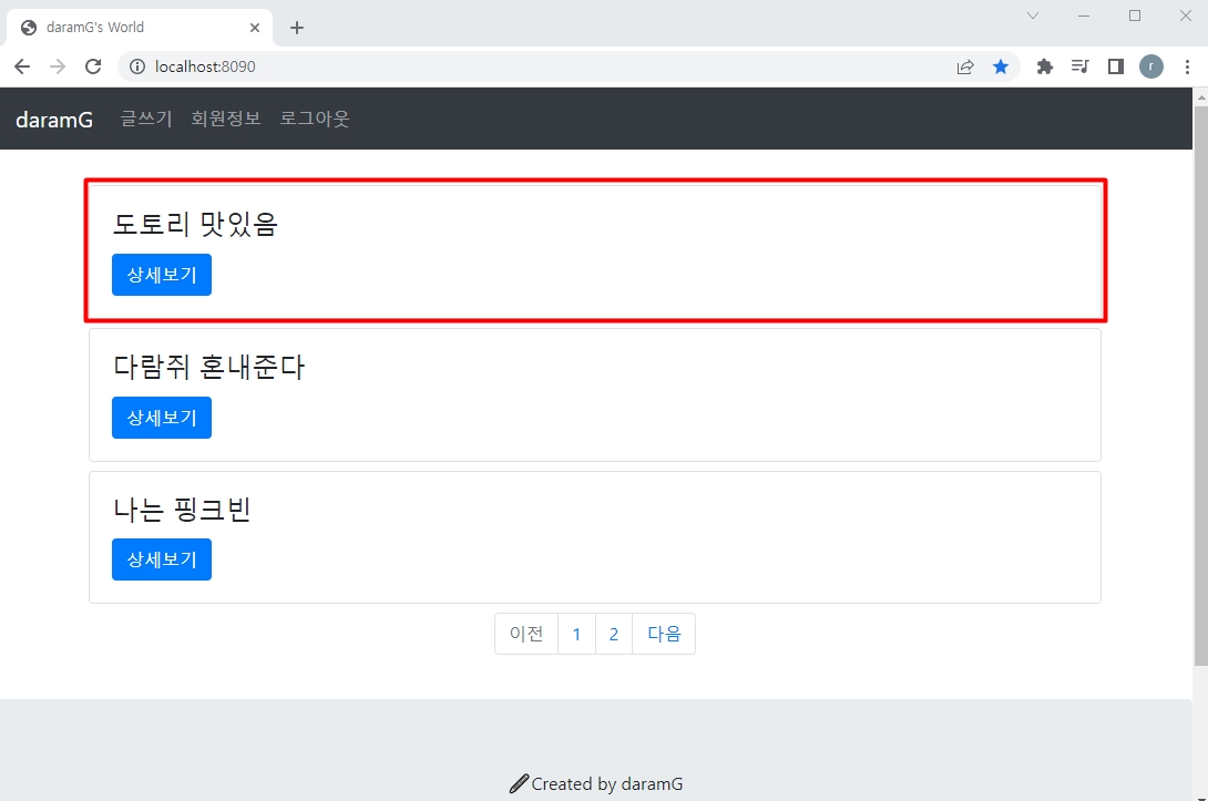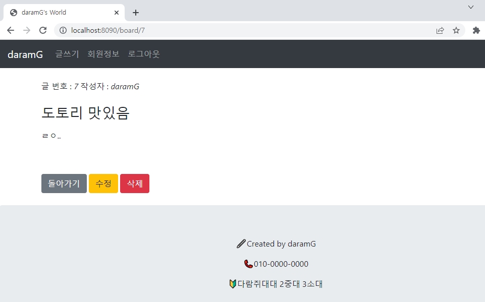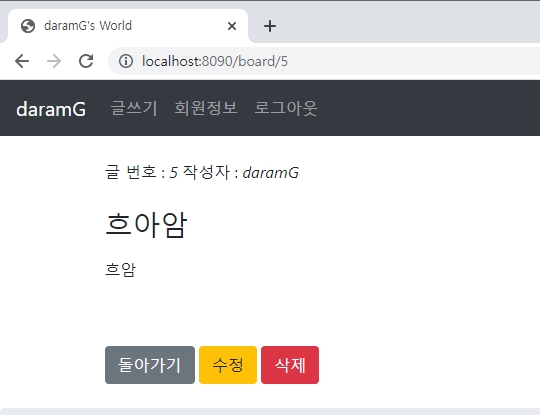 그러면 이제 자바스크립트(board.js)에서 board.id, board.title, board.content의 값을 들고와야한다.